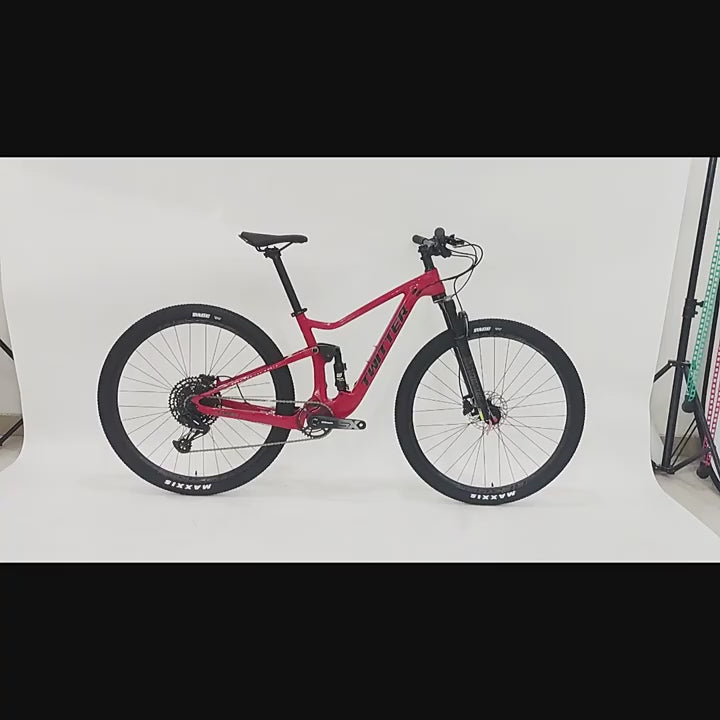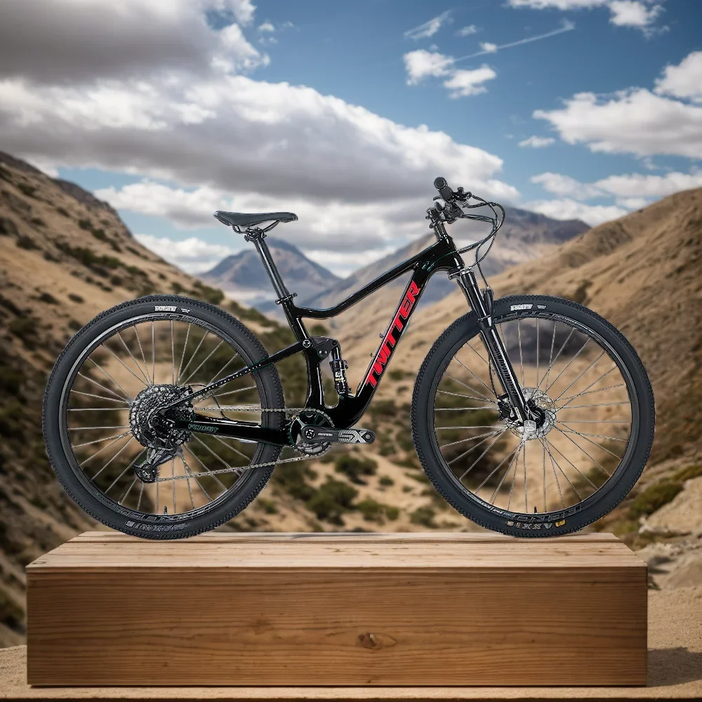 Ride with confidence and style on this premium carbon fiber full suspension mountain bike. Featuring a versatile soft-tail design and available in 29-inch and 27.5-inch wheel sizes, this MTB offers superior handling and comfort on rough trails and downhill runs.
